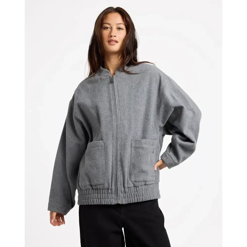 The Volcom Shes Da Bomb Jacket nails that relaxed bomber vibe you can wear day in, day out without overthinking it. Cut with a baggier fit and a classic waist-length profile, it layers comfortably over tees or hoodies and moves easily when you’re on the go. Front zip entry keeps things simple, while patch pockets with subtle embroidery give it a clean, skate-inspired finish. Elastic hem and cuffs seal in warmth and help the jacket sit just right, whether you’re commuting, cruising the skatepark or heading out for the evening.