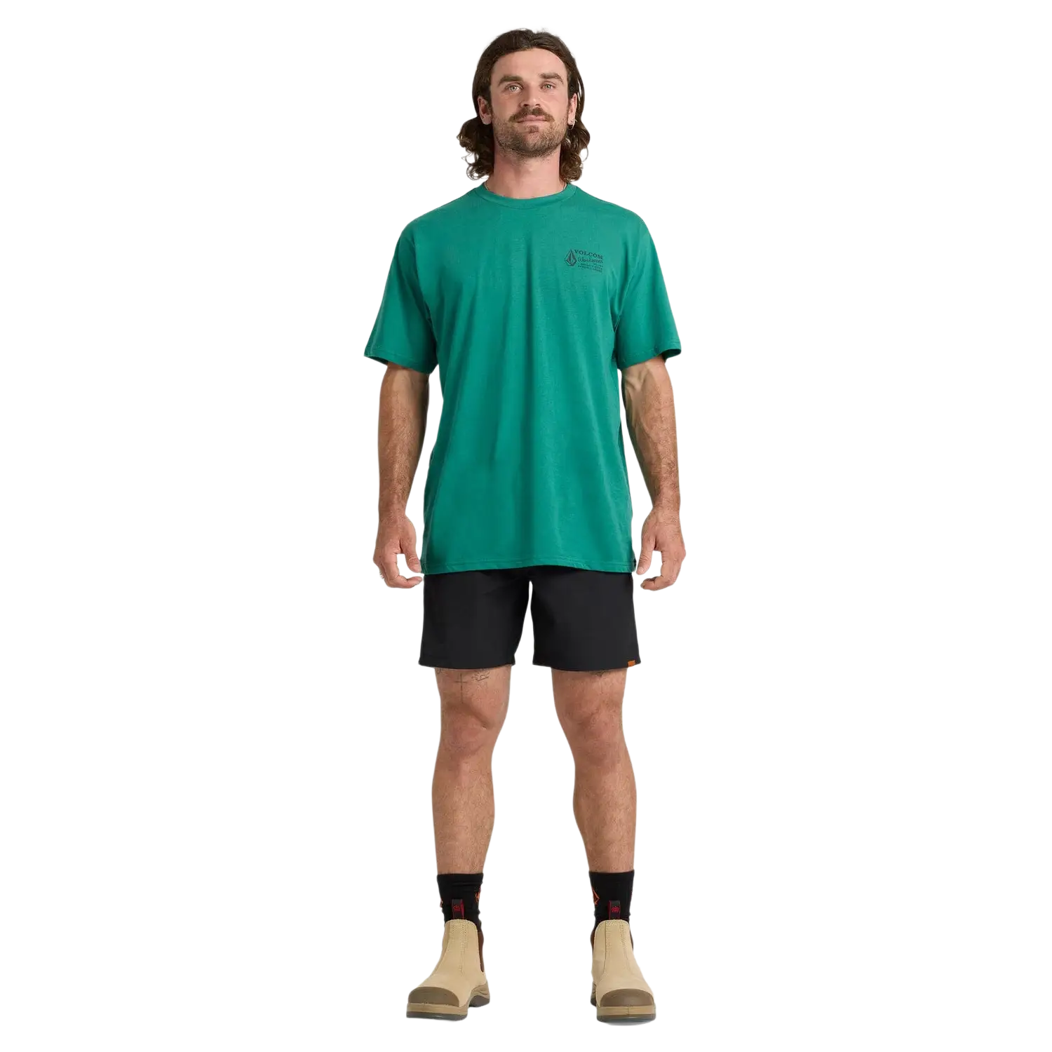 The Rack II Hybrid Shorts feature a relaxed fit with a 17-inch outseam, crafted from a lightweight 165gsm 4-way stretch ripstop fabric blend of 92% polyester and 8% elastane. This combination delivers durable water repellent (DWR) protection and outstanding mobility, perfect for work, water, and all-day wear. The shorts come with an elastic waistband for a comfortable, secure fit and include triple needle stitching for reinforced strength. Utility is key with multiple pockets including a right leg mini welt pocket, rear welt and patch pockets, offering plenty of storage options. Volcom’s signature Workwear label and stone logo embroidery on the leg seal the authentic workwear aesthetic.