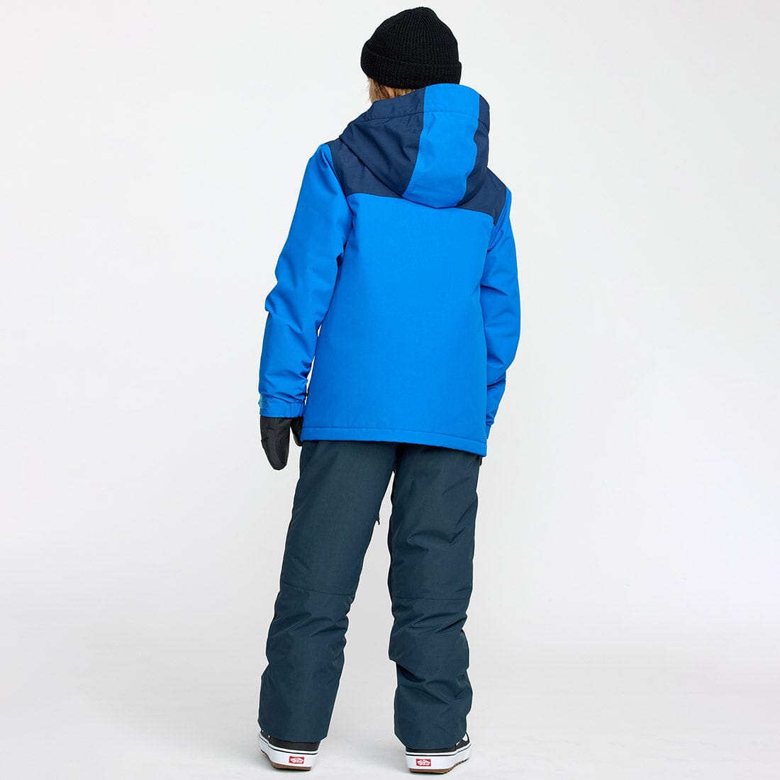 The Volcom Youth Stone.91 Insulated Jacket delivers solid performance in wet, chilly conditions through its standard fit that allows easy movement and layering for young riders. V-Science 2-layer recycled blend plain weave with non-fluorinated DWR and 10K/10K rating provides waterproofing and breathability, backed by taffeta lining. 150/80g recycled insulation keeps warmth consistent without bulk for all-day sessions on groomers and lifts. Features include pit zips for venting, multiple pockets, helmet-compatible hood, and jacket-to-pant interface.