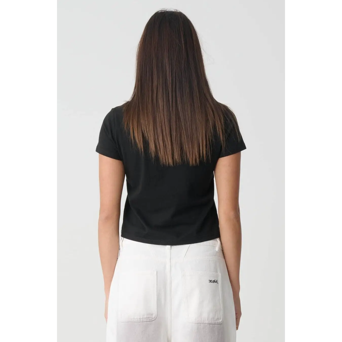 The Gummy Bunny Baby Tee in Black is our baby tee in a relaxed silhouette, finishing just above the hip. This slim fitting jersey tee in 100% Cotton features a ribbed crew neck with centre front chest print.