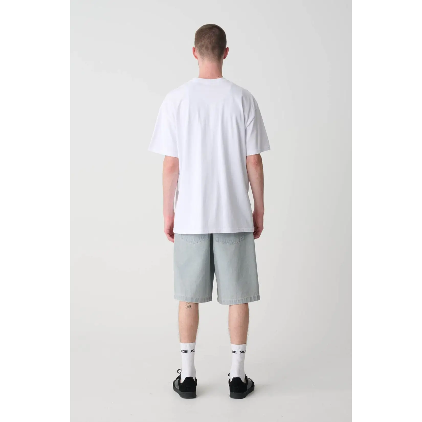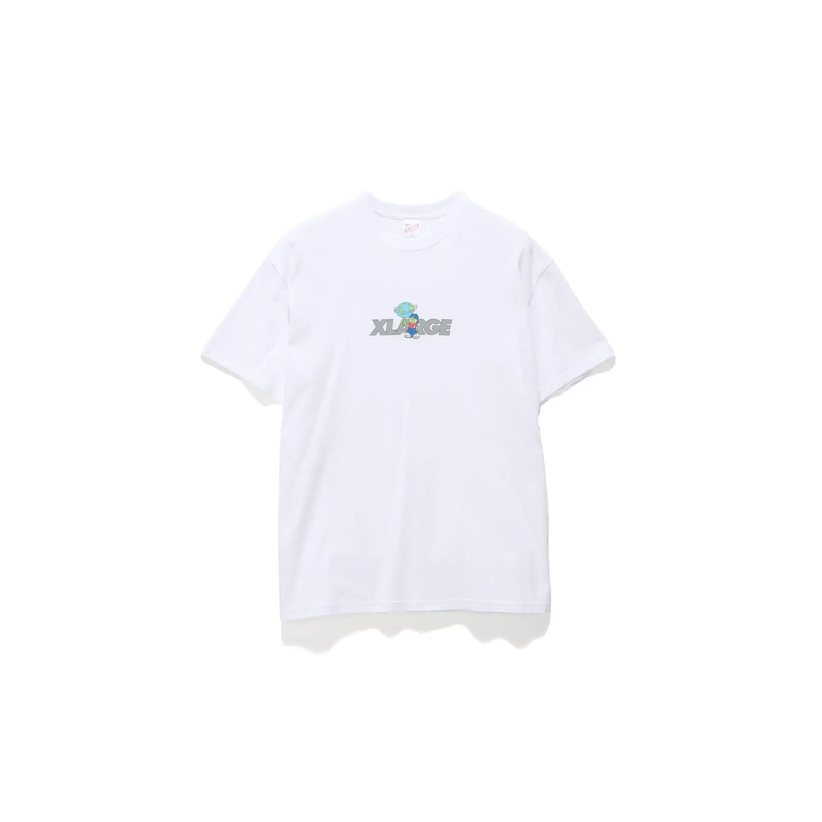 The Around the World shortsleeve crewneck tee in White is a custom box-fit, constructed from a combed cotton jersey.