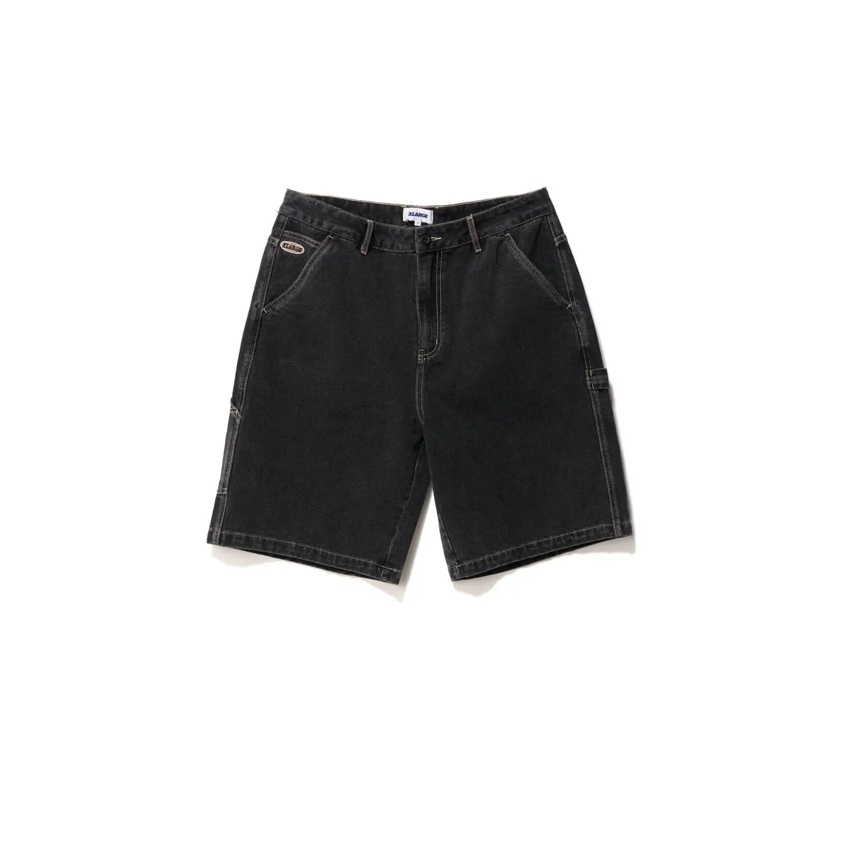 The Denim Work Short in Pepper is a fixed waist baggy fit. Features extra wide cut leg in a washed denim, they have an oversized waist with an extended rise, roomy thigh, and slightly tapered cuff